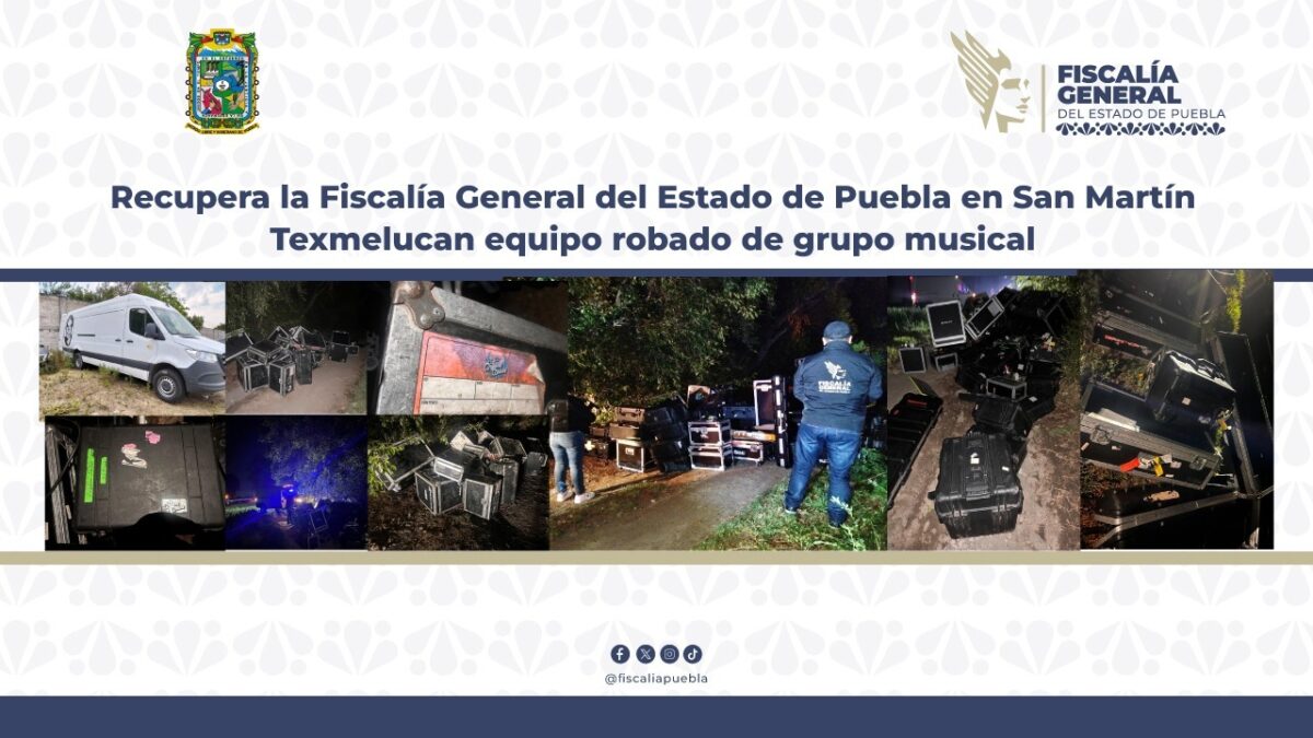 La Fiscalía General del Estado de Puebla recuperó equipo de audio e instrumentos musicales robados a una agrupación, en la comunidad de San Rafael Tlanalapan.