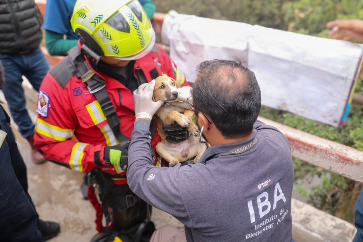 En una acción coordinada, autoridades estatales y municipales rescataron a un canino que cayó en una barranca entre las zonas de Chapultepec y Lomas Flor del Bosque, en Puebla.