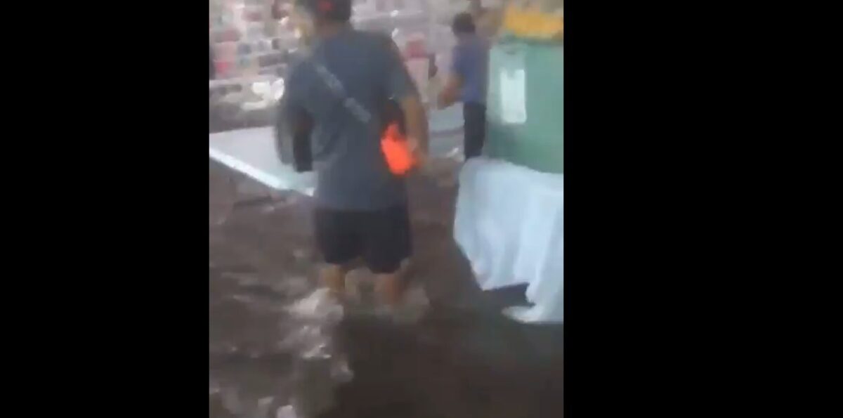 Los vendedores que se instalan en el tianguis de esta colonia tuvieron pérdidas económicas, ya que el agua no solo inundó las calles en las que se instalaron sino que arrastró los productos que ofrecían.
