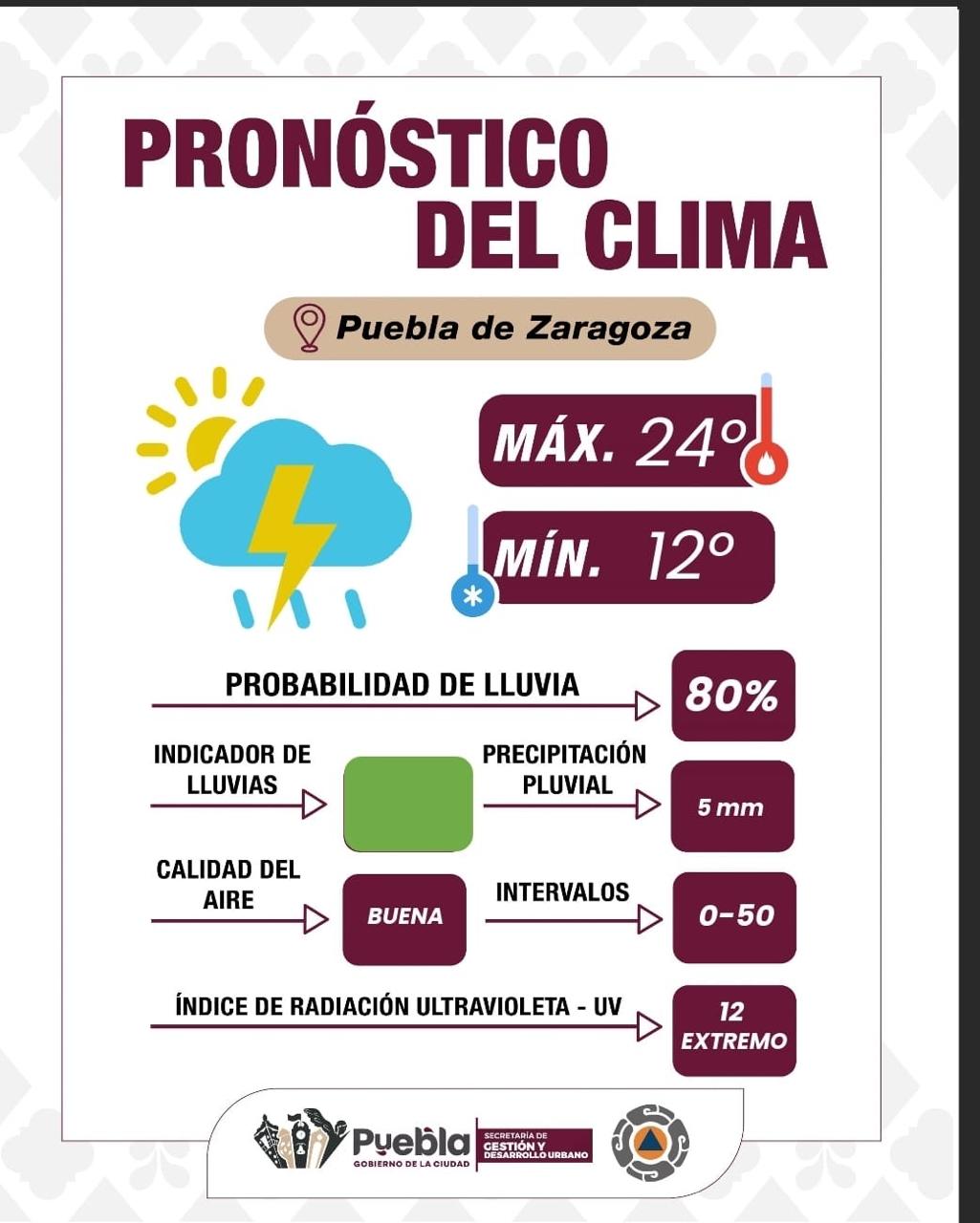 El Gobierno de la Ciudad, a través del Departamento de Alertamiento de la Dirección de Gestión de Riesgos en Materia de Protección Civil, informó que este miércoles se espera un día parcialmente nublado, con condiciones favorables para lluvias acompañadas de tormenta eléctrica durante la tarde.
