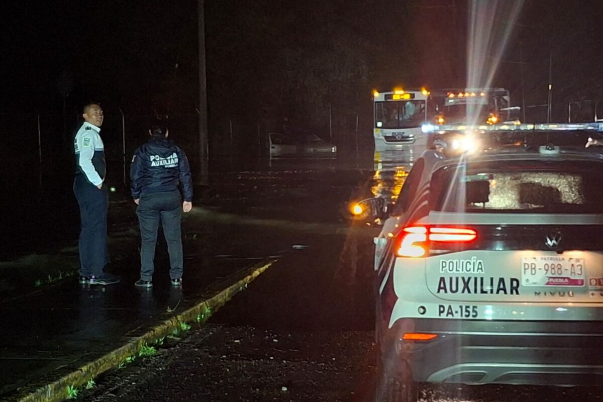 Tras las fuertes lluvias registradas en la capital poblana, elementos de la Policía Auxiliar de Puebla auxiliaron a estudiantes de la BUAP y automovilistas varados.