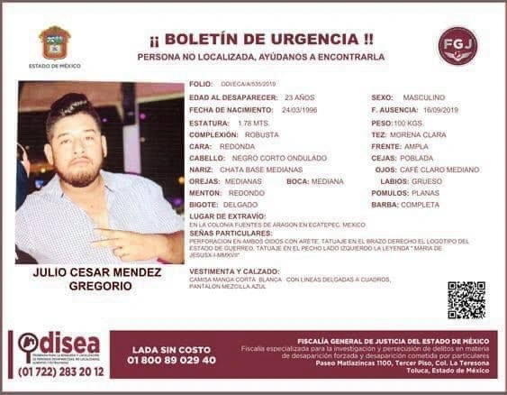 Julio César M.G., originario de Guerrero, fue reportado como desaparecido en 2019. Su cuerpo fue hallado sin identificar en Puebla y enviado a fosa común en el panteón La Piedad.