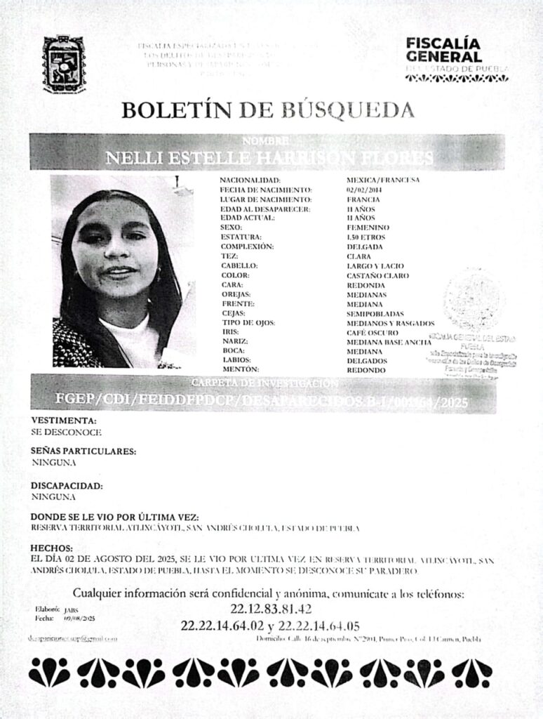 La víctima de violencia vicaria Ivonne Daniela Flores Mustre solicitó apoyo urgente a autoridades estatales y federales para localizar a su hija Nelli Estelle Harrison Flores, desaparecida desde hace 7 años.