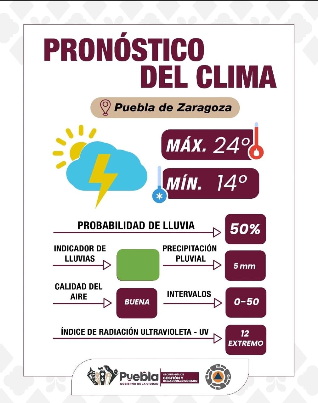El Gobierno de la Ciudad reitera el llamado a las y los poblanos a mantenerse informados a través de los canales oficiales de Protección Civil y seguir las recomendaciones preventivas.
