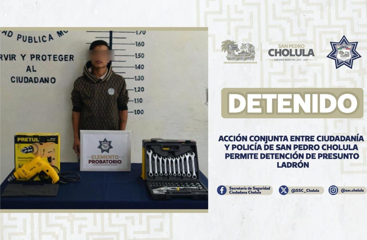 La acción ciudadana y la respuesta inmediata de la Secretaría de Seguridad Ciudadana de San Pedro Cholula (SSC Cholula) permitieron la detención de un presunto ladrón en la Junta Auxiliar de Rafael Ávila Camacho (Manantiales). La detención ocurrió tras un reporte oportuno de vecinas y vecinos a los números de emergencia, quienes identificaron al sujeto […]