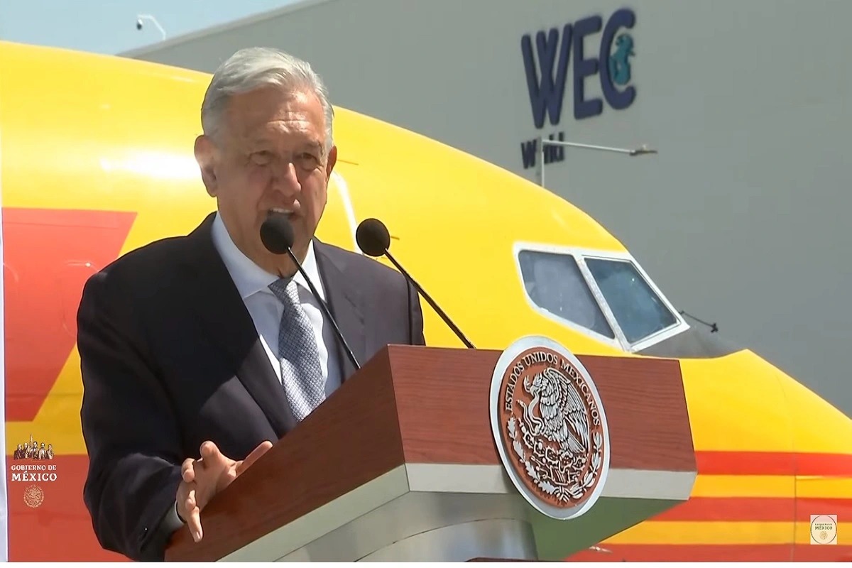 AMLO recibe el primer vuelo de carga de DHL en el AIFA