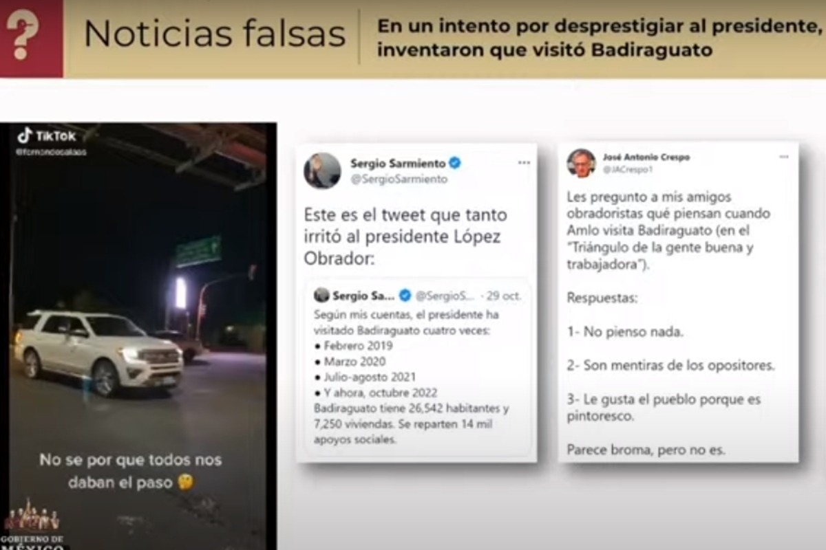 El presidente Andrés Manuel López Obrador (AMLO) no visitó el fin de semana Badiraguato, Sonora.Así lo negó Ana Elizabeth García Vilchis, titular de la sección Quién es quién en las mentiras en la mañanera de este viernes. Durante la presentación de esta semana, García Vilchis señaló que la supuesta visita fue una campaña de la […]