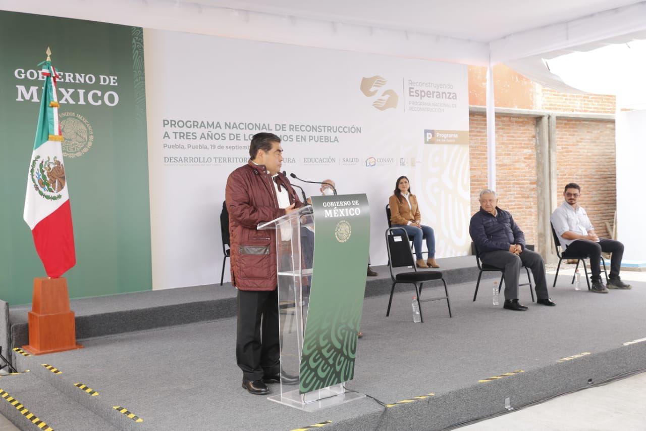 A tres años de los sismos Barbosa y López Obrador encabezan los avances de reconstrucción