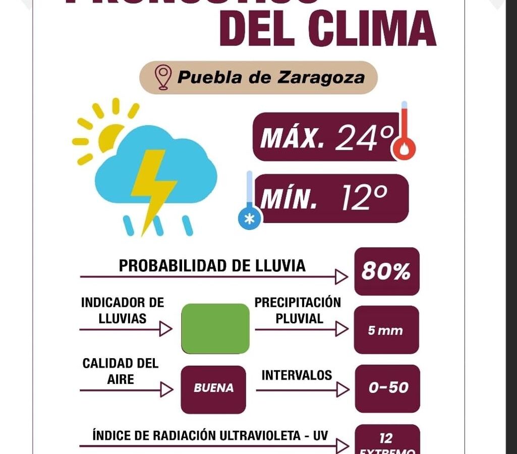 El Gobierno de la Ciudad de Puebla, a través de la Dirección de Gestión de Riesgos de Protección Civil, emitió un aviso preventivo por lluvias y tormentas eléctricas. El pronóstico indica cielo parcialmente nublado, con alta probabilidad de lluvia durante la tarde. Se espera que la acumulación de agua sea de 0 a 5 mm alrededor de las 19:00 horas. Lee más: […]