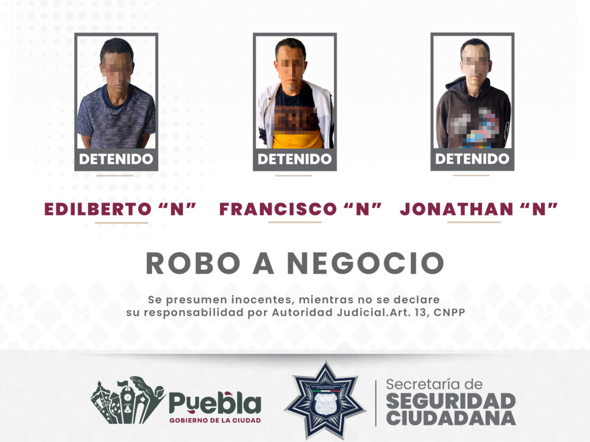 Derivado de una reacción inmediata, policías municipales lograron la detención de tres personas presuntamente involucradas en un robo violento a comercio. La Secretaría de Seguridad Ciudadana (SSC) de Puebla reportó la captura de tres sujetos que habrían cometido un asalto con violencia en la colonia Villas San Alejandro. Los uniformados realizaban un despliegue territorial cuando […]
