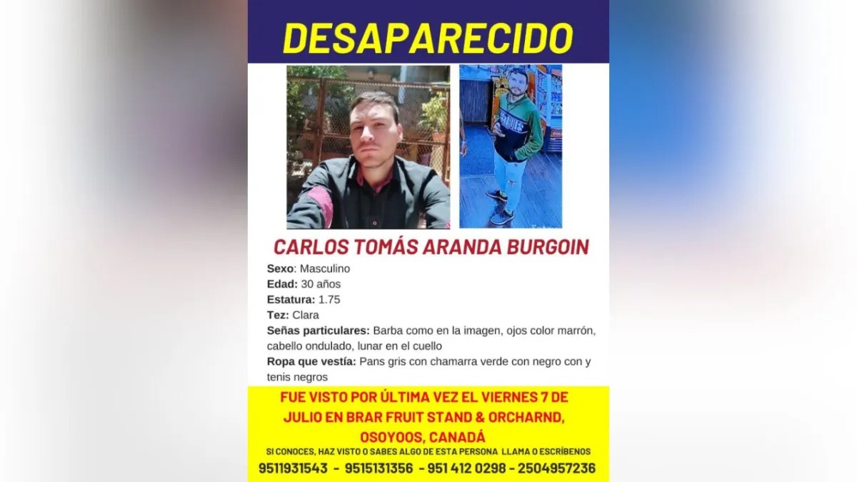 El mexicano Carlos Tomás Aranda Burgoin fue reportado como desaparecido en Osoyyos, Canadá. Su ficha de búsqueda compartida por el senador Emilio Álvarez de Icaza en su cuenta de Twitter (@EmilioAlvarezI), indica que Aranda Burgoin fue visto por última vez el 7 de julio en Brar Fruit Stand & Orcharnd. El hombre de 30 años […]