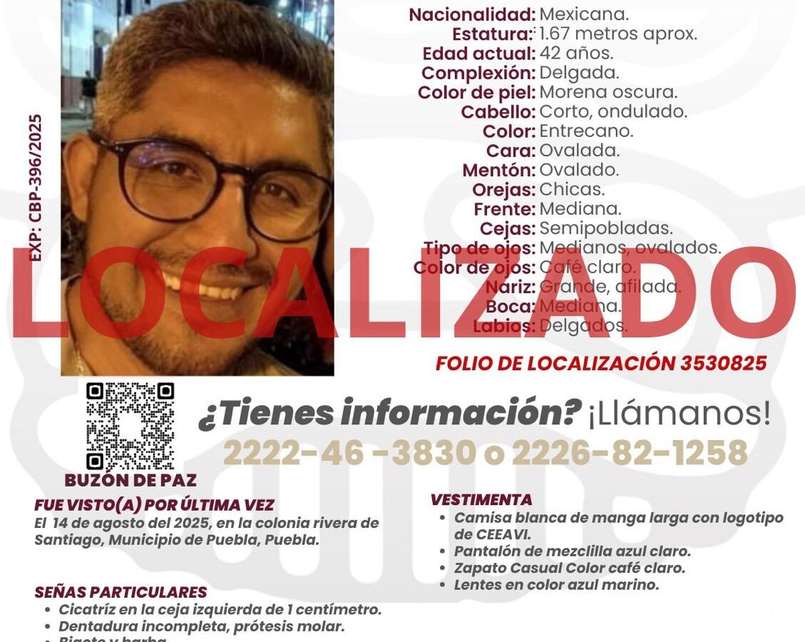 La Comisión de Búsqueda de Personas del Estado de Puebla informó la localización de Ángel Tomas Landa, sumando así 379 casos exitosos en la actual administración estatal. Este resultado corresponde a un total de 444 reportes atendidos, lo que refleja el compromiso de las autoridades poblanas en la atención inmediata de cada denuncia ciudadana. La Comisión, encabezada por Juan Enrique Rivera Reyes, […]