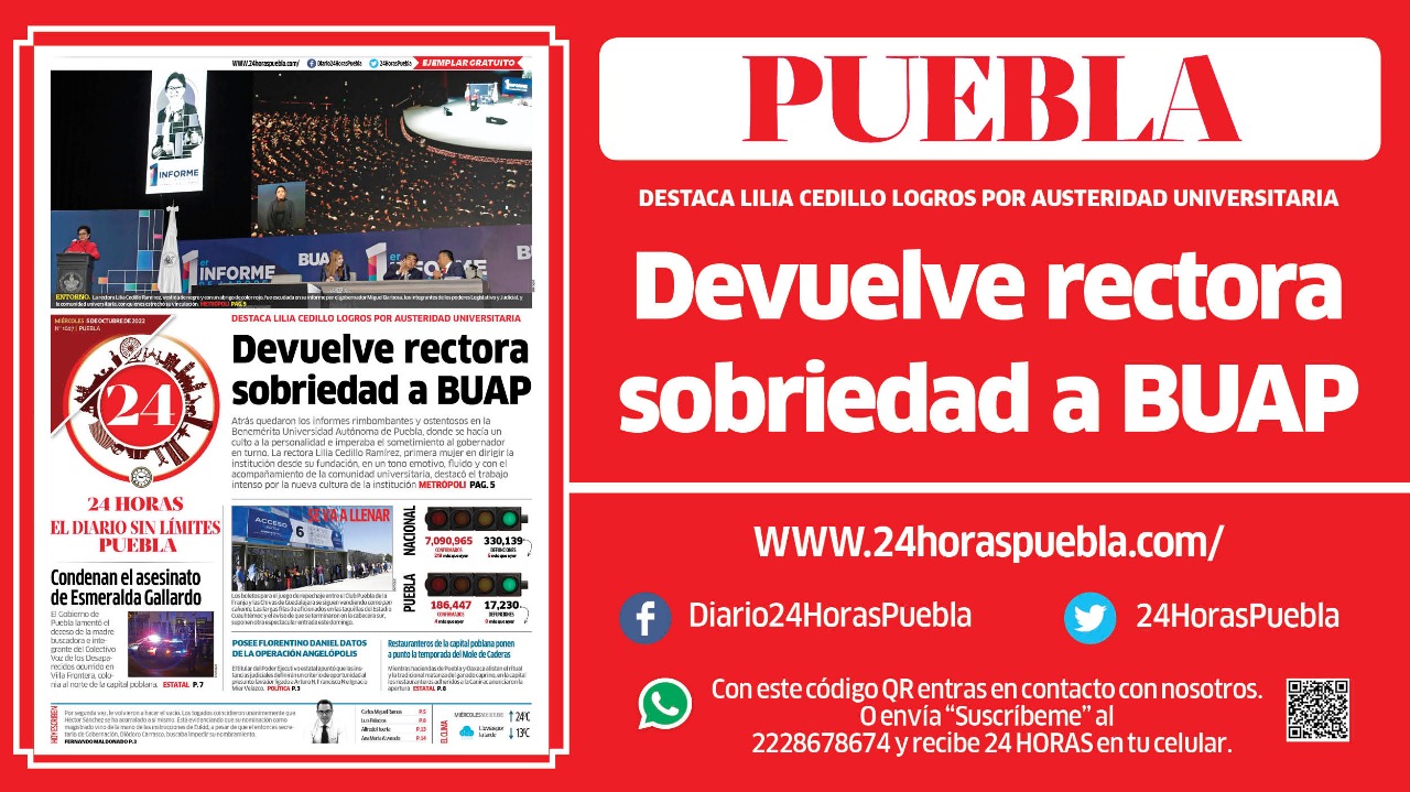 Publicado enPueblaRevisa la edición PDF de 24 Horas Puebla por 24 Horas septiembre 20, 2022septiembre 22, 2022Revisa la edición PDF de 24 Horas Puebla