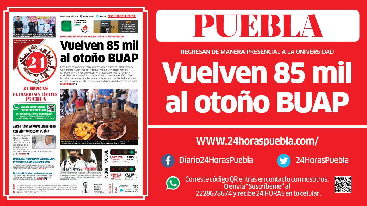 Publicado enPueblaRevisa la edición PDF de 24 Horas Puebla por 24 Horas agosto 17, 2022agosto 19, 2022Revisa la edición PDF de 24 Horas Puebla