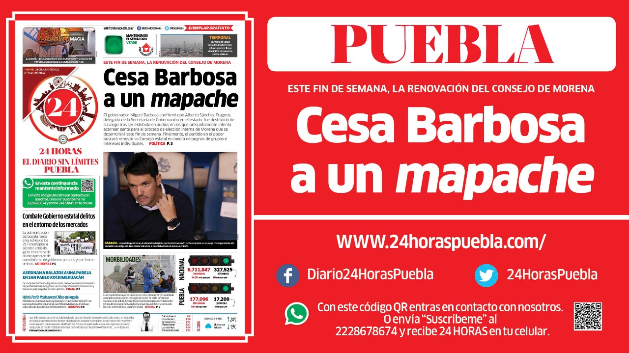 Publicado enPueblaRevisa la edición PDF de 24 Horas Puebla por 24 Horas julio 31, 2022agosto 2, 2022Revisa la edición PDF de 24 Horas Puebla