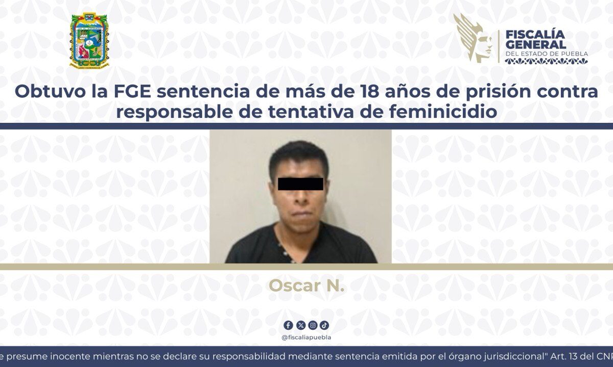 La Fiscalía General del Estado de Puebla obtuvo una sentencia de 18 años y 4 meses de prisión contra Óscar N., por el delito de feminicidio en grado de tentativa. Los hechos ocurrieron el 18 de noviembre de 2023 en la colonia Los Rosales Putaxcat, en el municipio de Huehuetla, cuando la víctima transitaba con […]