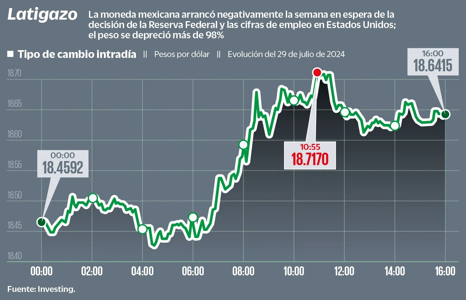 La moneda mexicana arrancó la semana en medio del nerviosismo en los mercados financieros, en espera de la decisión del miércoles de la Reserva Federal estadounidense sobre si recorta o no la tasa de interés. Además el indicador de empleo en EU que se dará a conocer esta semana también metió ruido al nivel del tipo de cambio que ayer alcanzó una […]