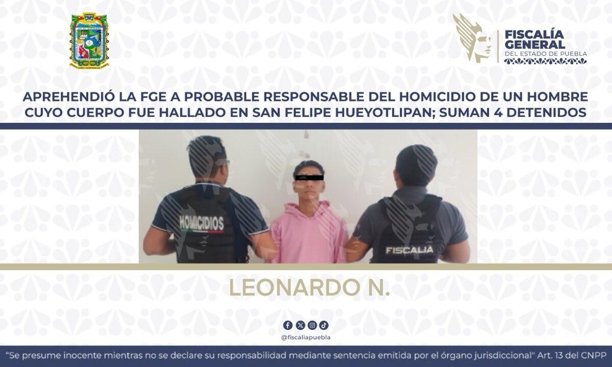 La Fiscalía General del Estado (FGE) de Puebla detuvo a Leonardo N., señalado como probable responsable del homicidio de un hombre cuyo cuerpo fue hallado el 31 de enero de 2025 en San Felipe Hueyotlipan. Las autoridades determinaron que la víctima, José Óscar N., fue asesinada el 28 de enero de 2025 en un inmueble […]