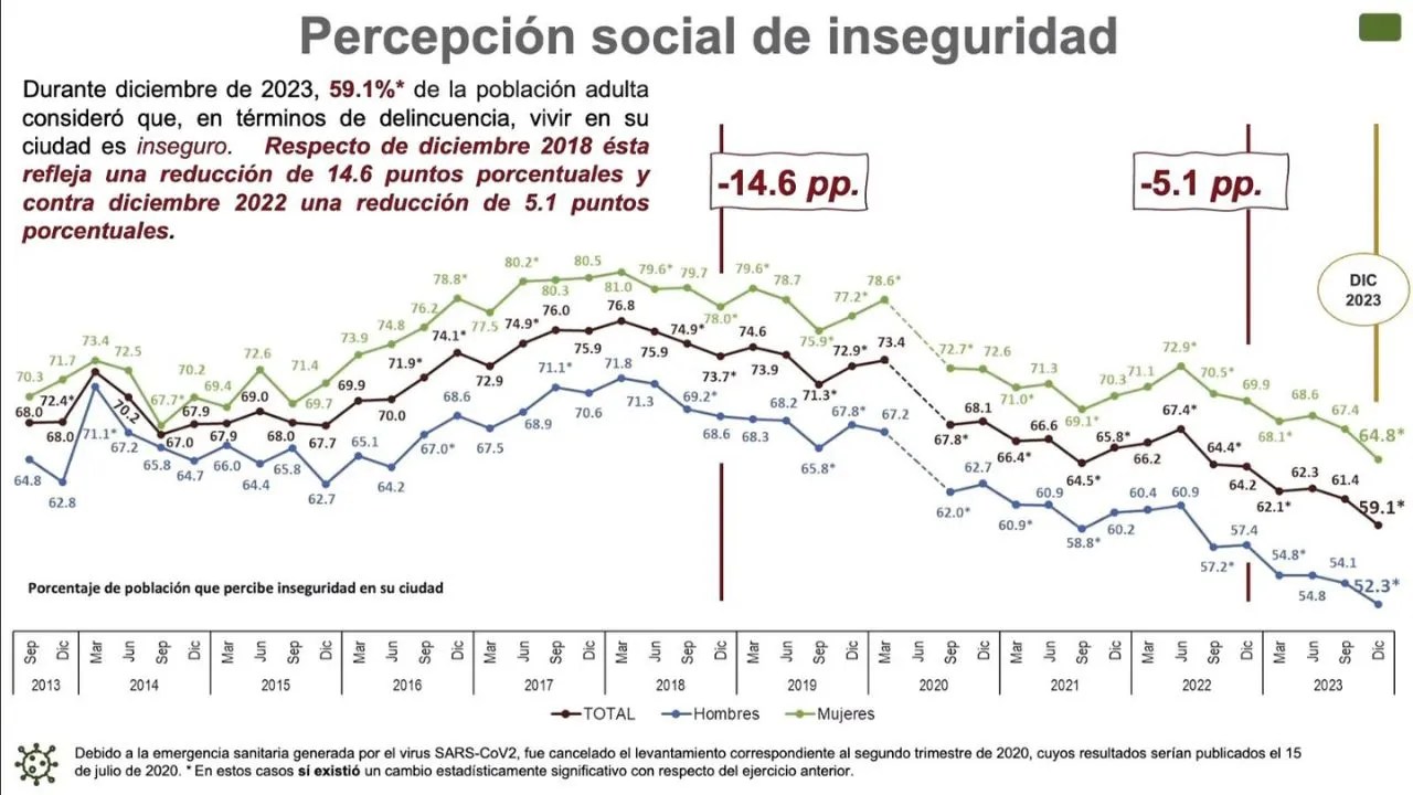 El presidente Andrés Manuel López Obrador (AMLO) presumió que bajó la percepción de inseguridad en el país; al corte de diciembre el Inegi reportó que fue de 59.1 por ciento. Este jueves, al inicio de su Mañanera, el titular del Ejecutivo presumió las cifras del Instituto Nacional de Estadística y Geografía (Inegi) al decir que: […]