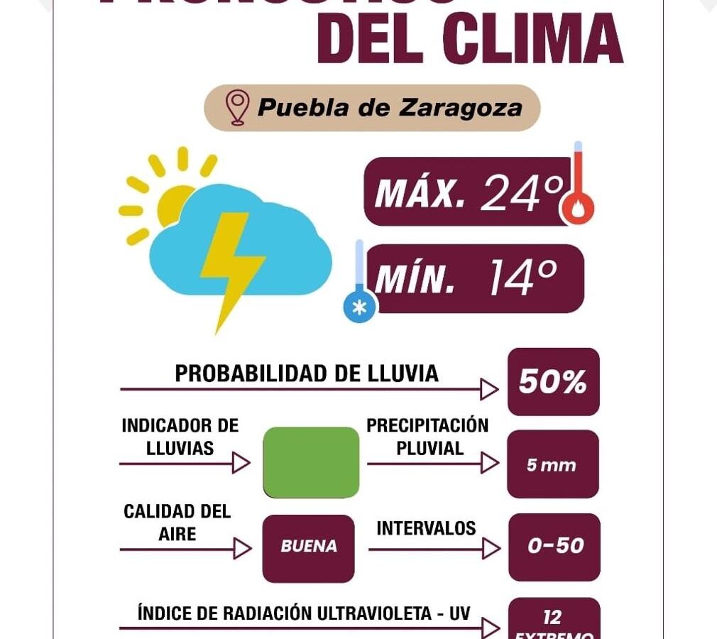 La Dirección de Gestión de Riesgos de la Secretaría de Gestión y Desarrollo Urbano informó que este 03 de septiembre de 2025 se esperan condiciones parcialmente nubladas en la ciudad de Puebla. Se prevé una probabilidad media de lluvias, acompañadas de tormentas eléctricas, principalmente hacia las 17:00 horas. La acumulación de agua estimada oscila entre 0 a 5 milímetros. https://whatsapp.com/channel/0029VaE1iV22975FVy9QXt3J Ante estas condiciones, la dependencia exhorta […]