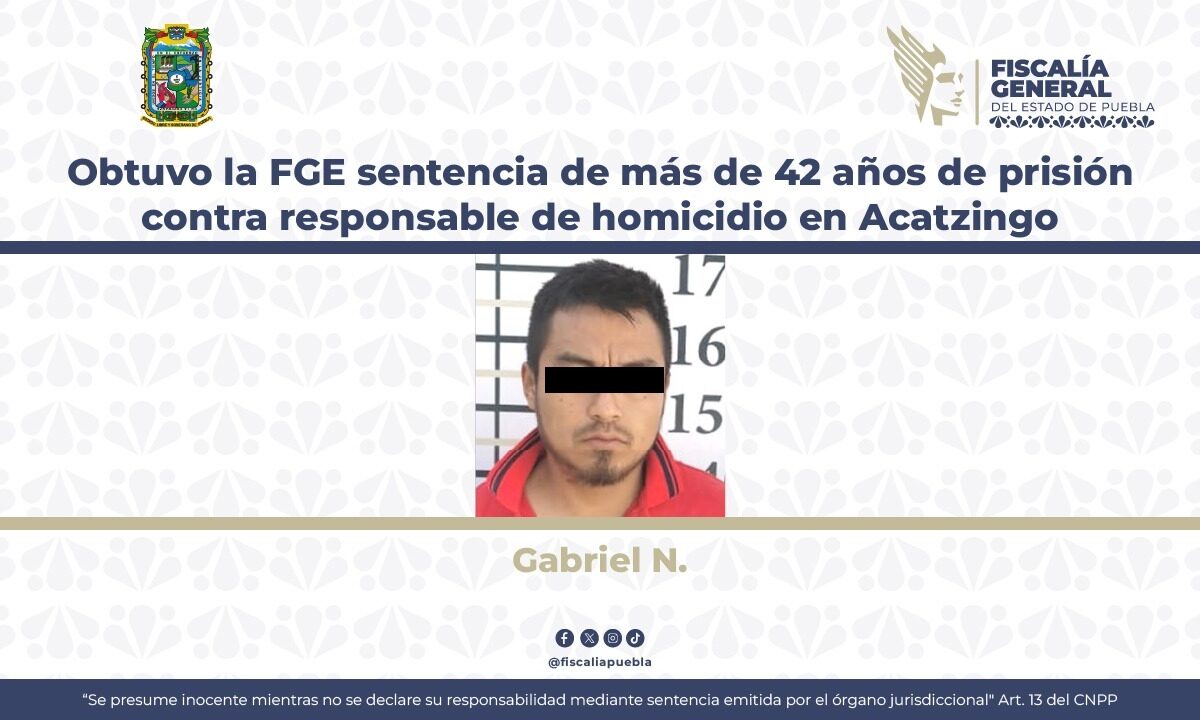 La Fiscalía General del Estado de Puebla obtuvo una sentencia de 42 años y 6 meses de prisión contra Gabriel N., alias “El Tacuaro”, por el delito de homicidio calificado cometido en marzo de 2021 en el municipio de Acatzingo. Según la carpeta de investigación, el 24 de marzo de 2021, la víctima realizaba una […]